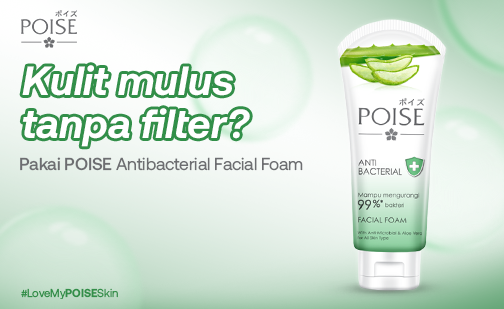 Itu kenapa ada POISE Anti Bacterial Facial Foam. Dengan busa lembut yang bisa membersihkan sampai ke pori-pori, POISE Anti Bacterial Facial Foam membersihkan wajah sampai ke pori‐pori, membunuh 99% bakteri penyebab komedo/jerawat ringan dalam 10 detik, dan dengan busa lembut agar wajah tetap bersih tanpa terasa perih. Kalau dipakai rutin, lama-lama kulit kamu bisa semulus pakai filter!